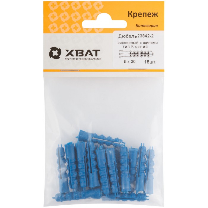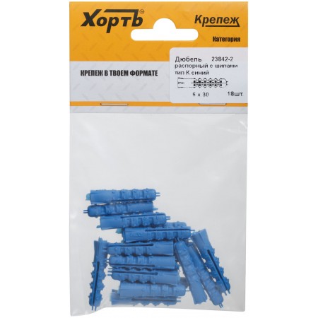 Дюбель распорный с шипами тип К синий 6 х 30 (фасовка 18 шт) (23842-2)