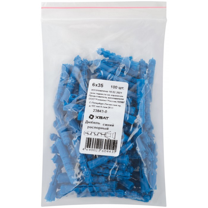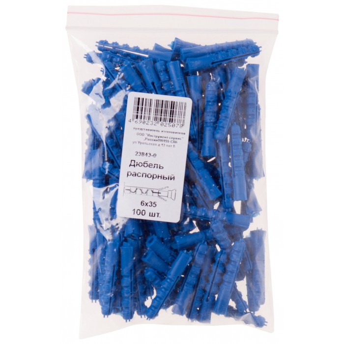 Дюбель распорный с шипами тип К синий 6 х 35 100шт.(фасовка) (23843-0)