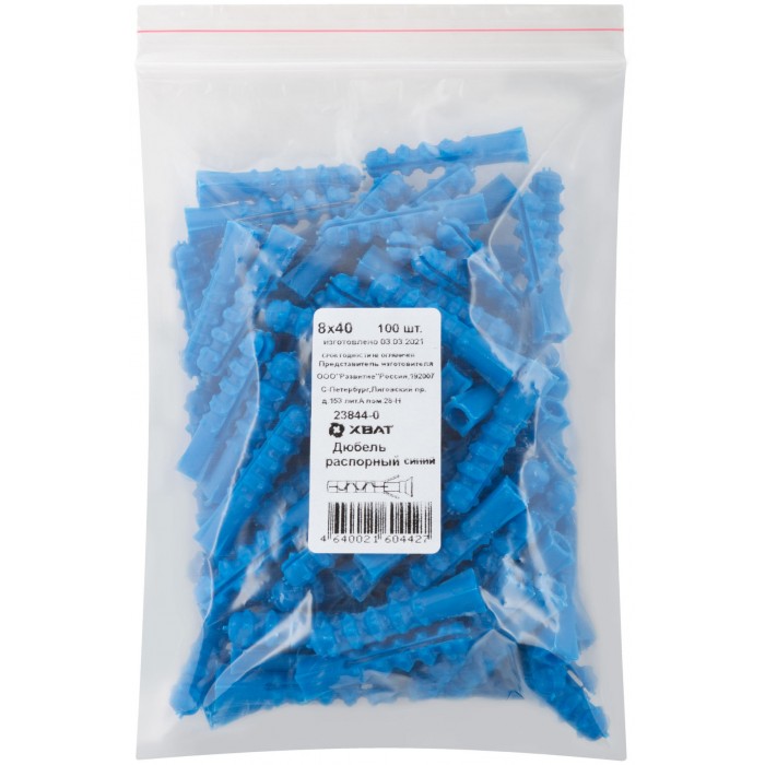 Дюбель распорный с шипами тип К синий 8 х 40 100 шт.(фасовка) (23844-0)