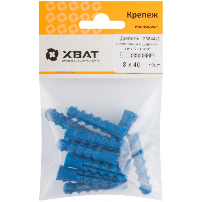 Дюбель распорный с шипами тип К синий 8 х 40 (фасовка 12 шт.) (23844-2)