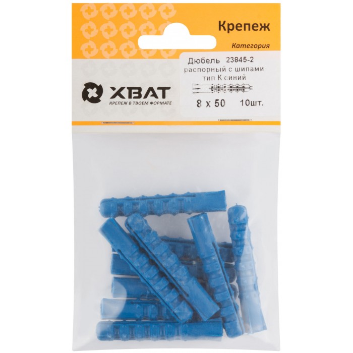 Дюбель распорный с шипами тип К синий 8 х 50 (фасовка 10шт.) (23845-2)