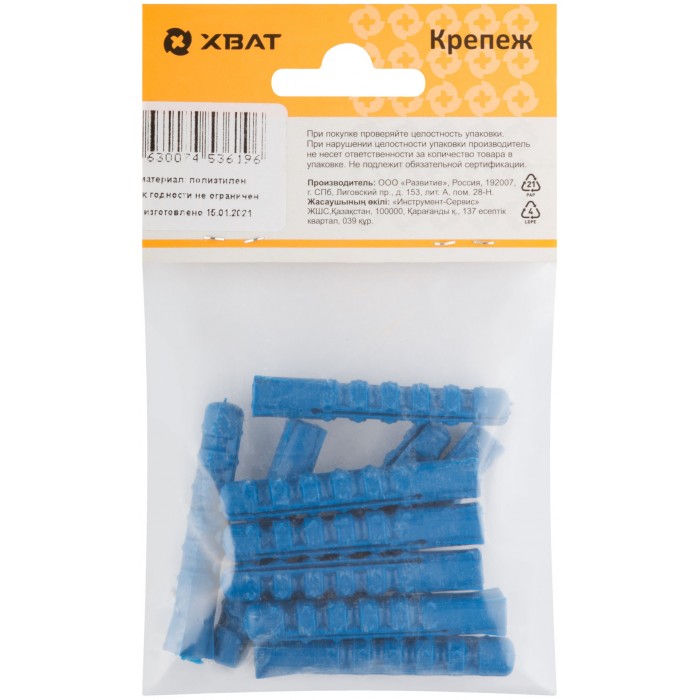 Дюбель полипропиленовый тип К усиленный с шипами синий. Предназначен для всех видов материалов из бетона и кирпича. Отличается большим значением допустимой нагрузки. Расширение дюбеля происходит по всей длине, достигая максимального значения в передней половине дюбеля. Шипы на поверхности дюбеля усиливают коэффициент трения.