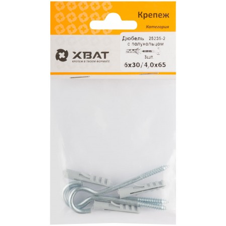 Дюбель с полукольцом 6х30/4,0х65 (фасовка по 3 шт.) (25235-2)