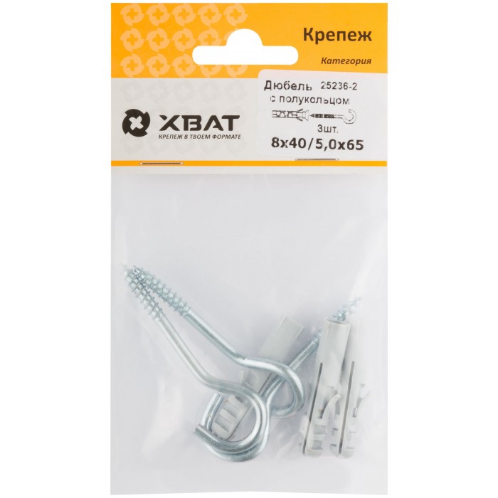 Дюбель с полукольцом 8х40/5х65 (фасовка по 3 шт.) (25236-2)