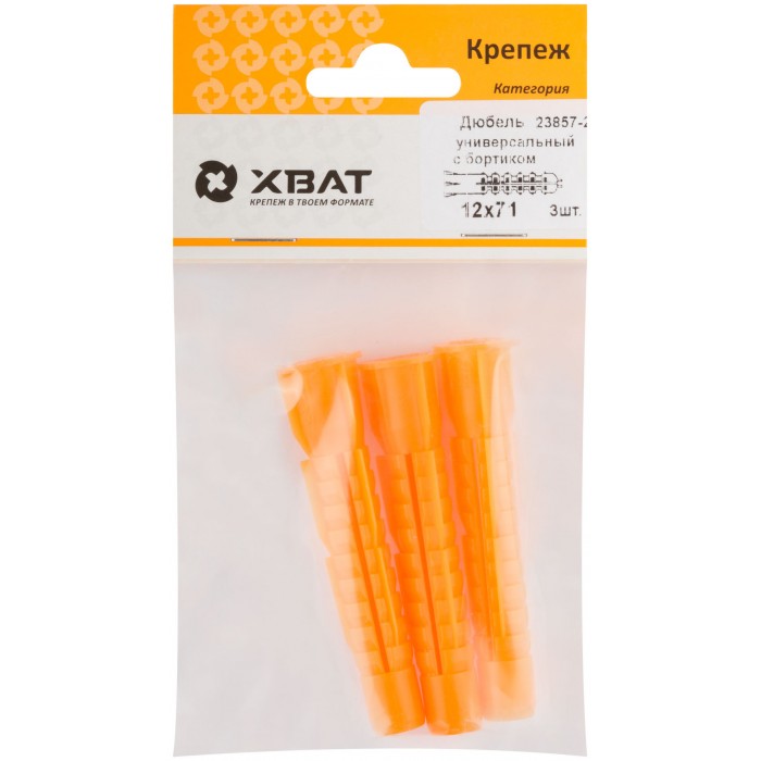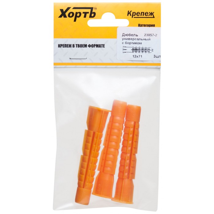 Дюбель универсальный с бортиком (U) 12 х 71 (фасовка 3 шт.) (23857-2)