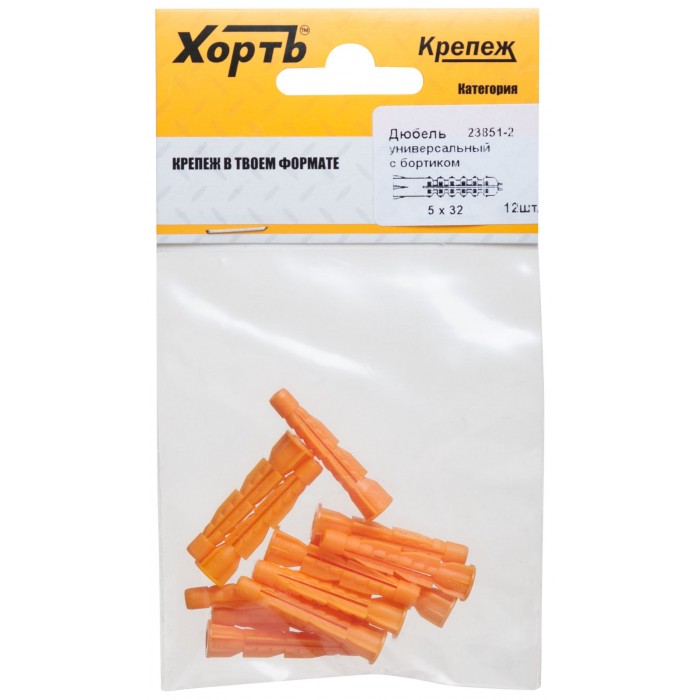 Дюбель универсальный с бортиком (U) 5 х 32 (фасовка 12 шт.) (23851-2)