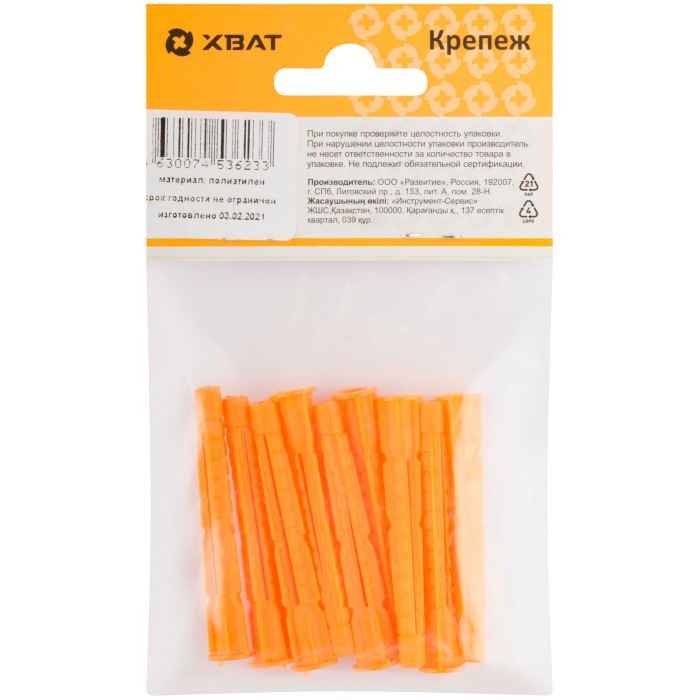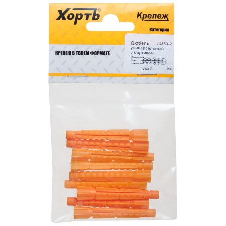 Дюбель универсальный с бортиком (U) 6 х 52 (фасовка 9 шт.) (23853-2)