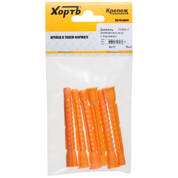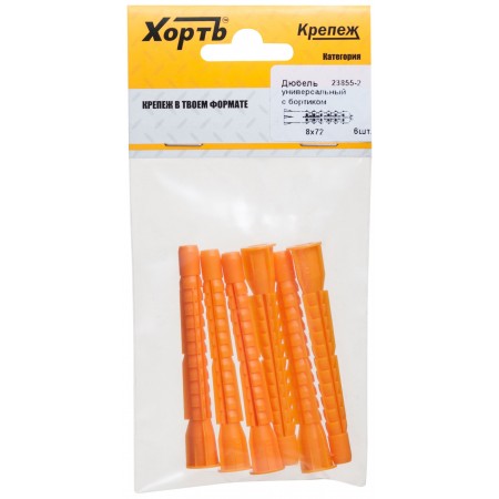 Дюбель универсальный с бортиком (U) 8 х 72 (фасовка 6 шт.) (23855-2)
