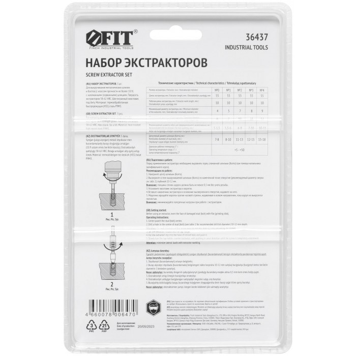 Экстракторы для болтов и шпилек усиленные, HSS сталь, Профи 5 шт. (36437)