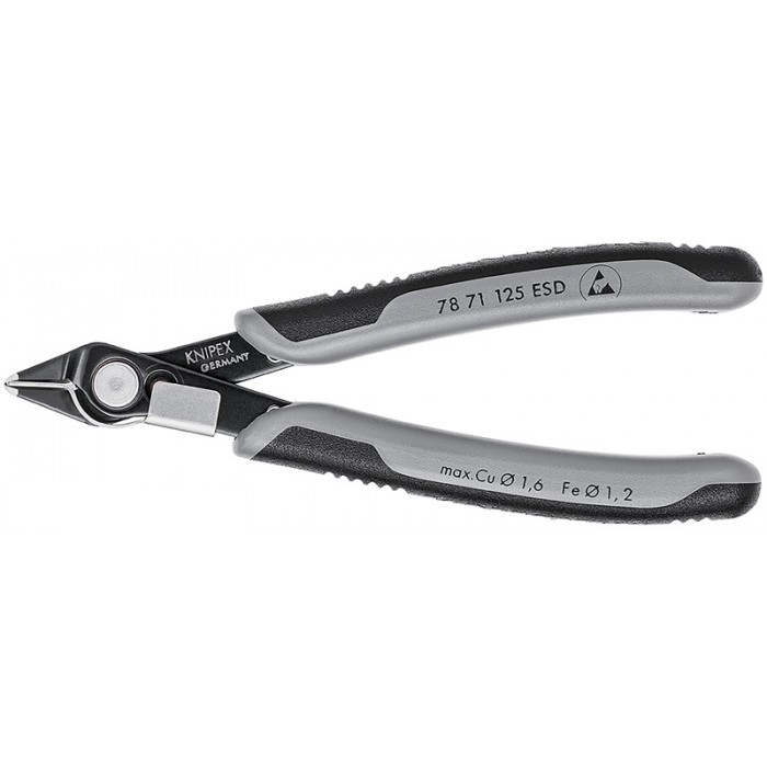 Бокорезы прецизионные Super Knips 125 мм, ESD, зажим для проволоки, чернёные, 2-комп антистатические ручки Electronic KN-7871125ESD