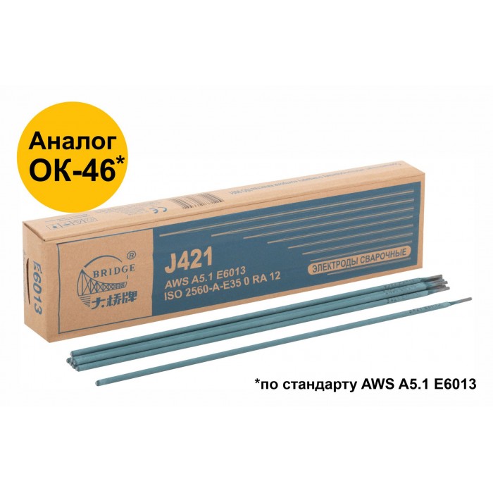 BRIDGE J421 - сварочный электрод с рутиловым покрытием. Подходит как для переменного тока, так и для постоянного. Предназначен для ручной дуговой сварки конструкций из низкоуглеродистых конструкционных сталей, тонколистовой стали с коротким прерывистым сварным швом и сварки, которая требует плавного прохода. Сварка позиций: PA, PB, PC, PD, PE, PF.