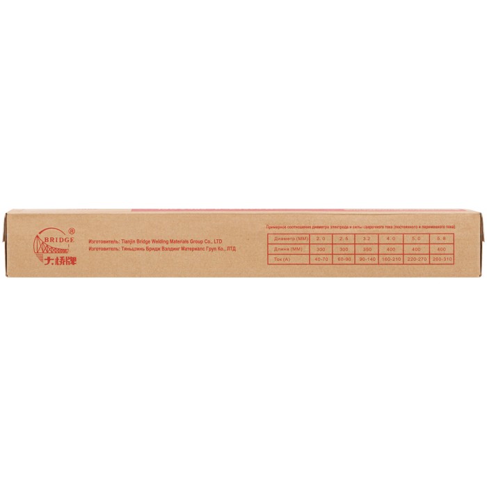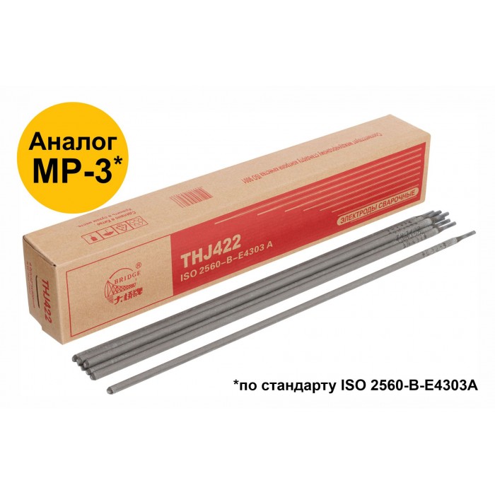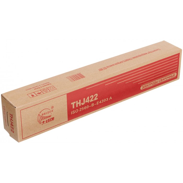 BRIDGE THJ422 - сварочный электрод с рутиловым покрытием. Подходит как для переменного тока, так и для постоянного. Предназначен для ручной дуговой сварки конструкций из низкоуглеродистых конструкционных сталей с классом прочности Q235. Сварка позиций: PA, PB, PC, PD, PE, PF.