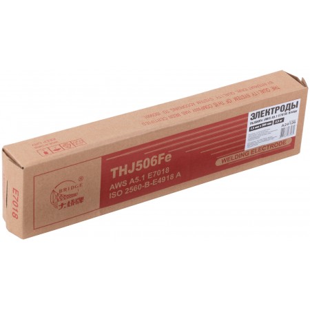 BRIDGE THJ506Fe - сварочный электрод имеет покрытие основного типа, с низким содержанием водорода. Подходит как для переменного тока, так и для постоянного. Предназначен для сварки углеродистой стали и низколегированной стали, такой как Gr 50, с классом прочности Q355. Имеет классификации: GB/T 5117 E5018, AWS A5.1 E7018, ISO 2560-B-E4918 A. Сварка позиций: PA, PB, РС, PD, PE, PF.