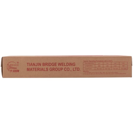 BRIDGE THJ506Fe - сварочный электрод имеет покрытие основного типа, с низким содержанием водорода. Подходит как для переменного тока, так и для постоянного. Предназначен для сварки углеродистой стали и низколегированной стали, такой как Gr 50, с классом прочности Q355. Имеет классификации: GB/T 5117 E5018, AWS A5.1 E7018, ISO 2560-B-E4918 A. Сварка позиций: PA, PB, РС, PD, PE, PF.
