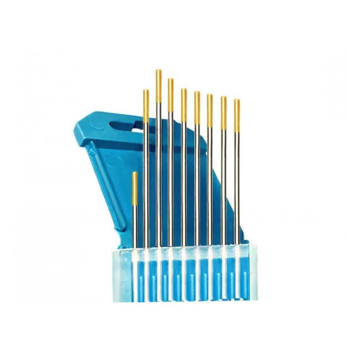 Электроды вольфрамовые ВЛ-15 с аттестацией НАКС, Ø 1,6 мм, цвет золотистый (цена указана за 1 электрод) из сплава вольфрама с оксидом лантана имеют очень легкий первоначальный запуск дуги, низкую склонность к прожогам, устойчивую дугу и отличную характеристику повторного зажигания дуги.