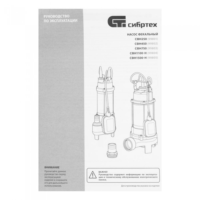 Фекальный насос СФН1100-Н, 1100 Вт, напор 10 м, 18000 л/ч, нож Сибртех (99804)