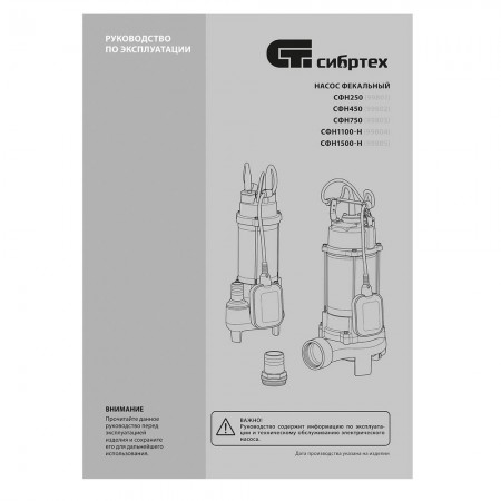 Фекальный насос СФН1500-Н, 1500 Вт, напор 19 м, 25000 л/ч, нож Сибртех (99805)