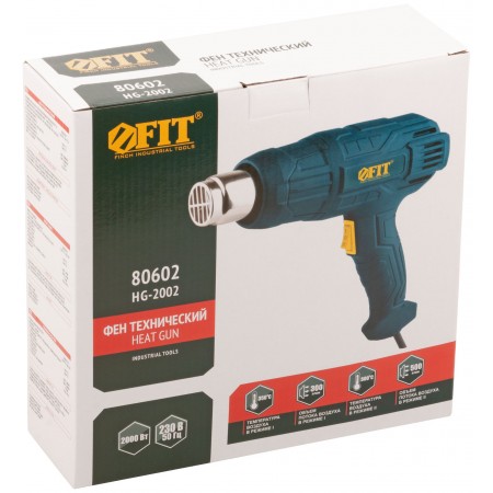 2000 Вт; 350/500 С°; поток воздуха 300/500 л/ мин; установочный диаметр насадок 34 мм; 8,5 А; 0,62 кг; коробка. 3 сменные насадки, 2 температурных режима, клавишный переключатель, термореле для защиты от перегрева, возможность стационарной установки.