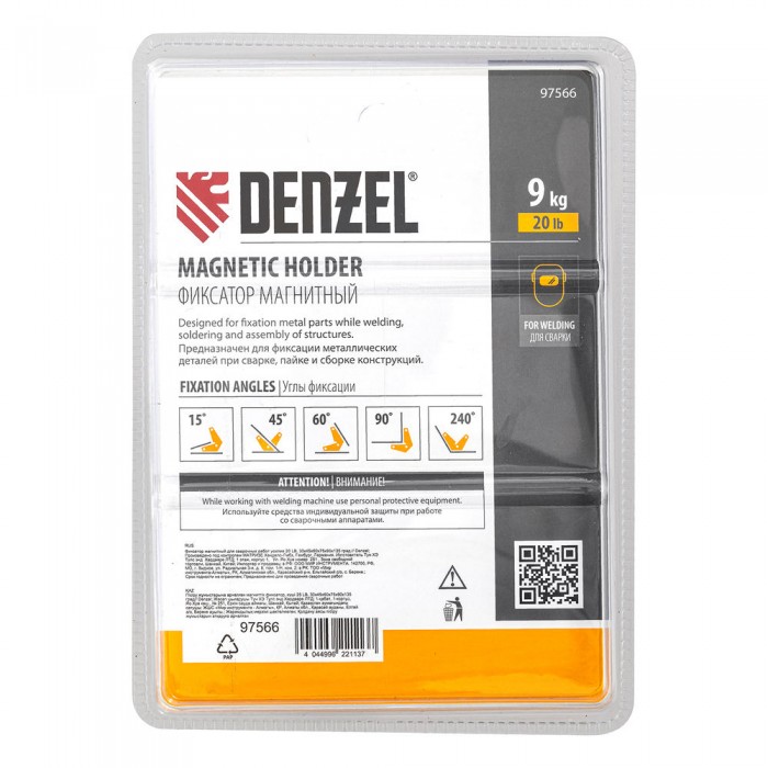 Фиксатор магнитный для сварочных работ усилие 25 LB, 30х45х60х75х90х135 град. Denzel (97566)