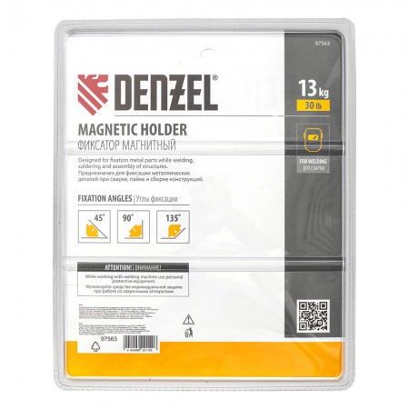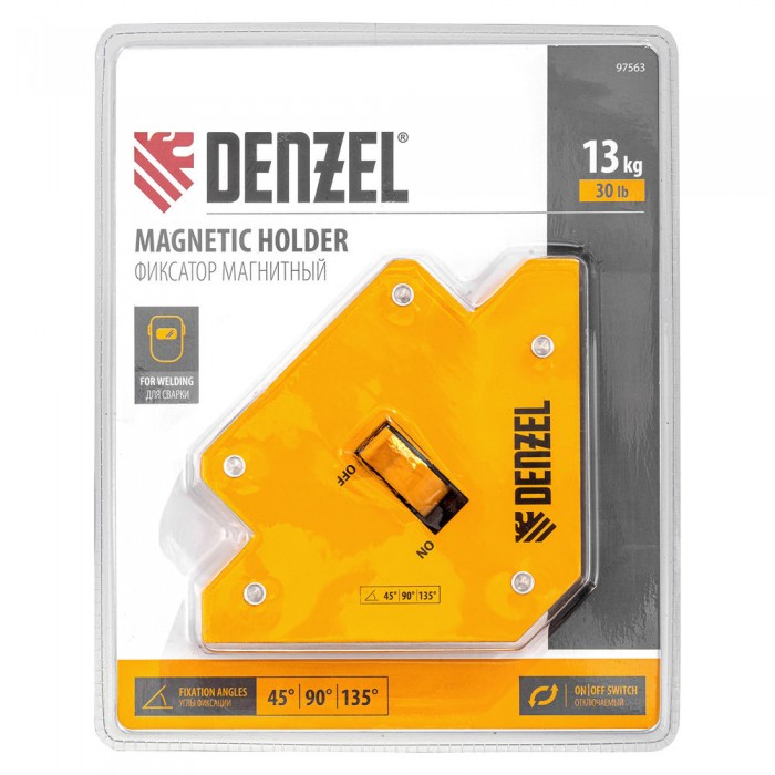 Фиксатор магнитный отключаемый для сварочных работ усилие 30 LB, 45х90х135 град. Denzel (97563)