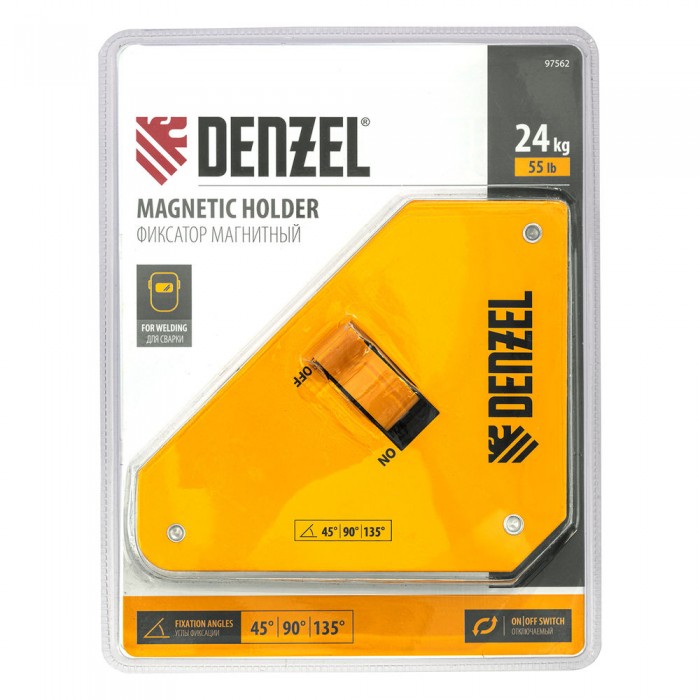 Фиксатор магнитный отключаемый для сварочных работ усилие 55 LB, 45х90 град. Denzel (97562)