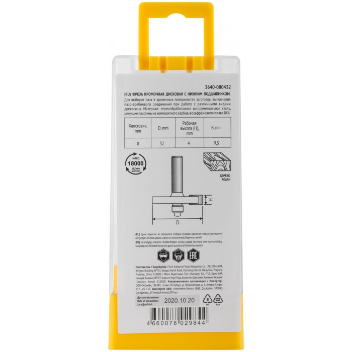 Фреза кромочная дисковая с нижним подшипником DxHxL=32х4х50 мм (3640-080432)