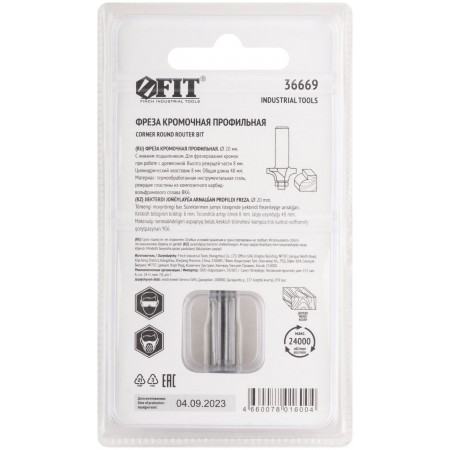Используется для работ по дереву. С нижним подшипником. Для фрезерования кромок. Цилиндрический хвостовик 8 мм. Материал: инструментальная сталь с твердосплавными режущими вставками. Упаковка: двойной блистер.