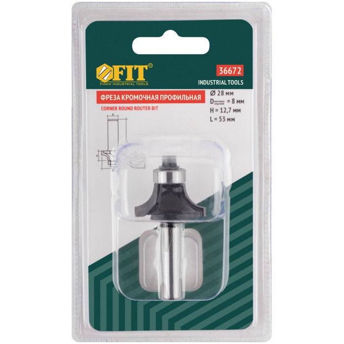 Фреза кромочная профильная c нижним подшипником, DxHxL = 28х12,7х53 мм (36672)