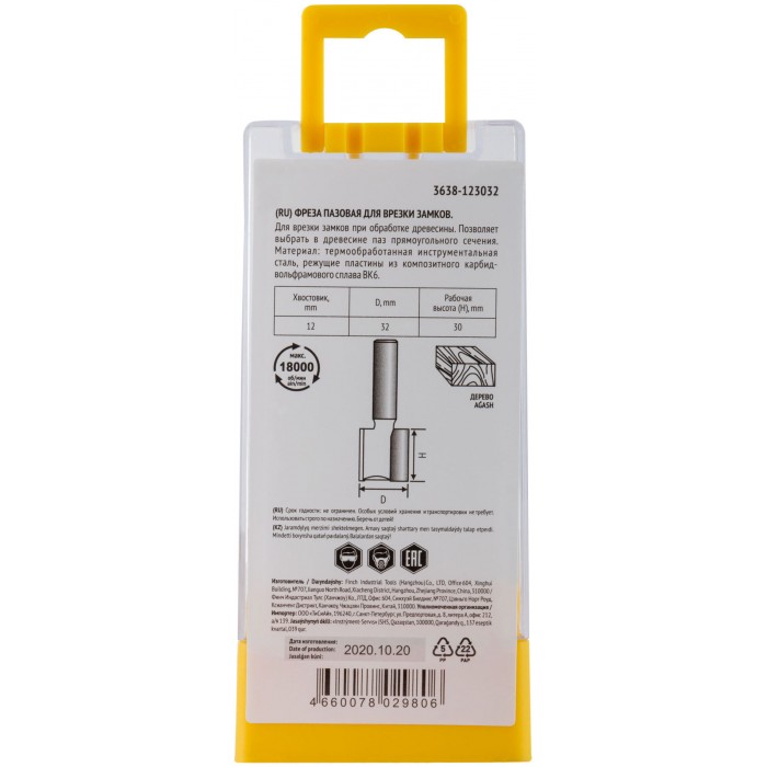 Фреза пазовая для врезки замков DxHxL=32х30х65 мм (3638-123032)