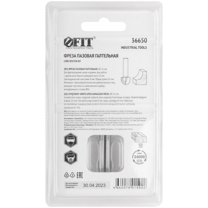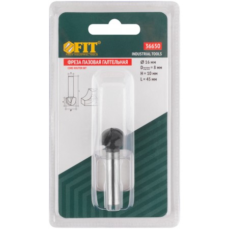 Фреза пазовая галтельная, DxHxL = 16х10х45 мм (36650)