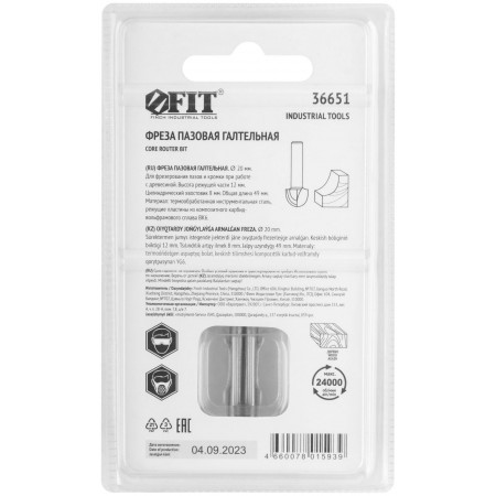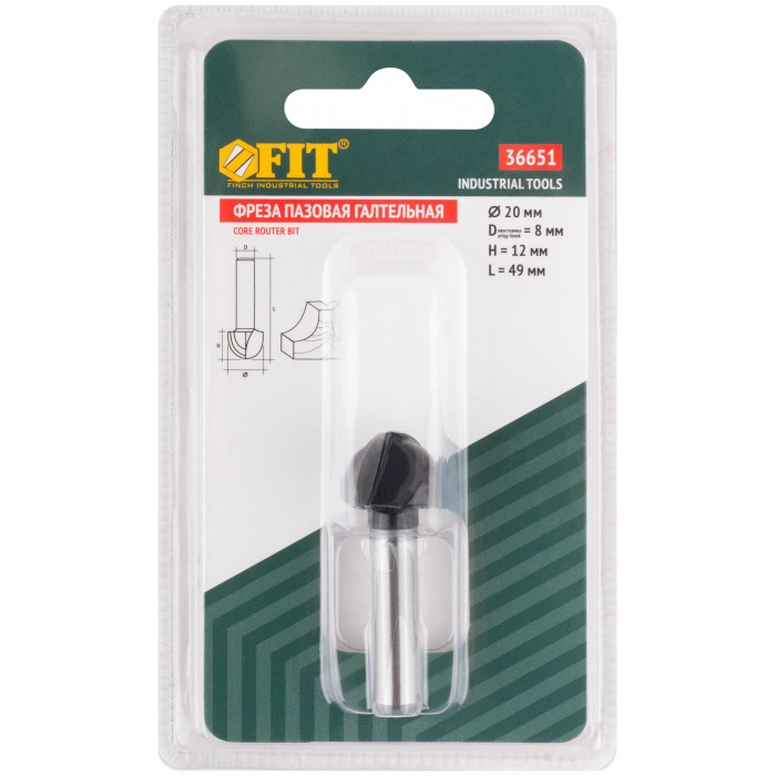 Фреза пазовая галтельная, DxHxL = 20х12х49 мм (36651)