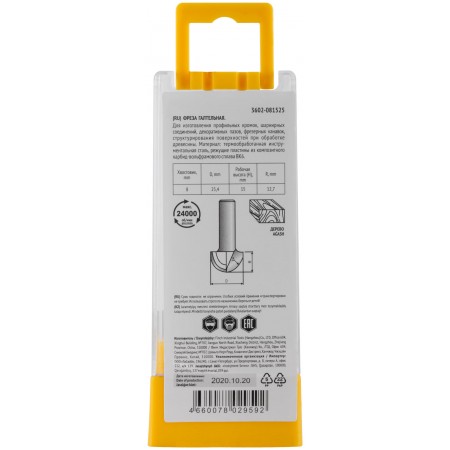 Используется для работ по дереву. Для фрезерования пазов. Цилиндрический хвостовик.Материал: инструментальная сталь, с твердосплавными режущими вставками. Упаковка: пластиковая коробка.