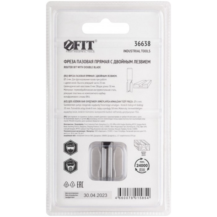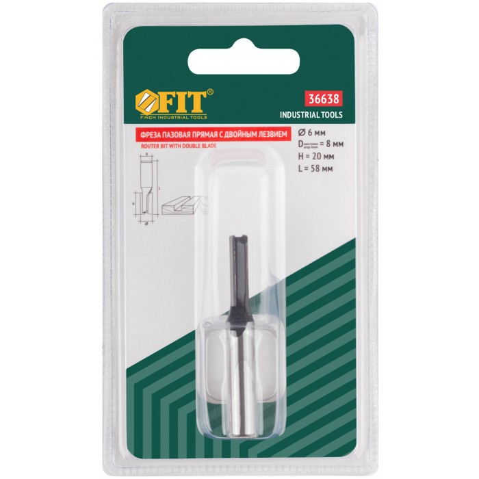 Фреза пазовая прямая с двойным лезвием, DxHxL = 6х20х58 мм (36638)