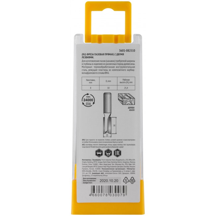 Фреза пазовая прямая с двойным лезвием DxHxL=10х25х55 мм (3601-082510)