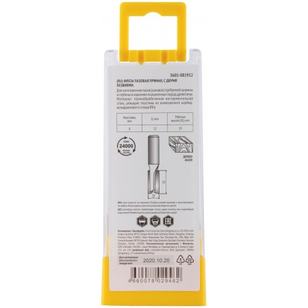 Фреза пазовая прямая с двойным лезвием DxHxL=12х19x52 мм (3601-081912)