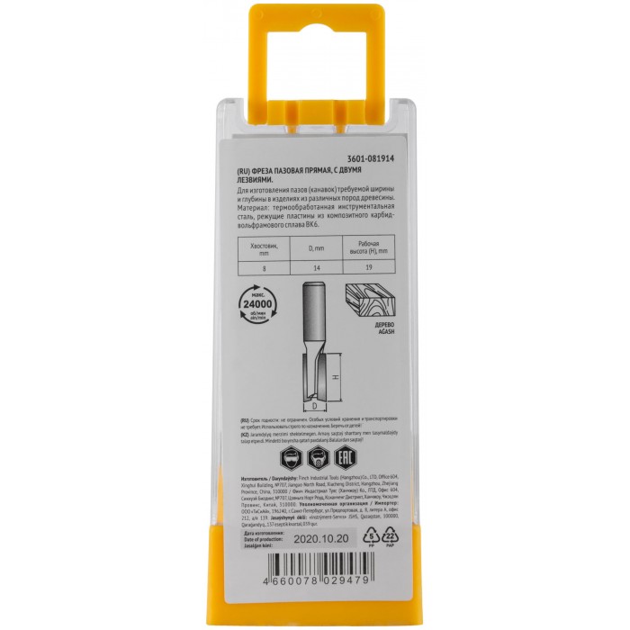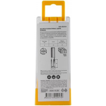 Фреза пазовая прямая с двойным лезвием DxHxL=14х19x52 мм (3601-081914)