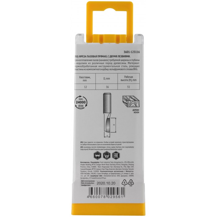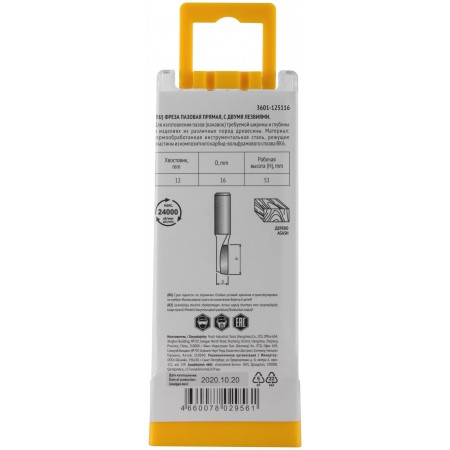 Фреза пазовая прямая с двойным лезвием DxHxL=16х51x87 мм (3601-125116)