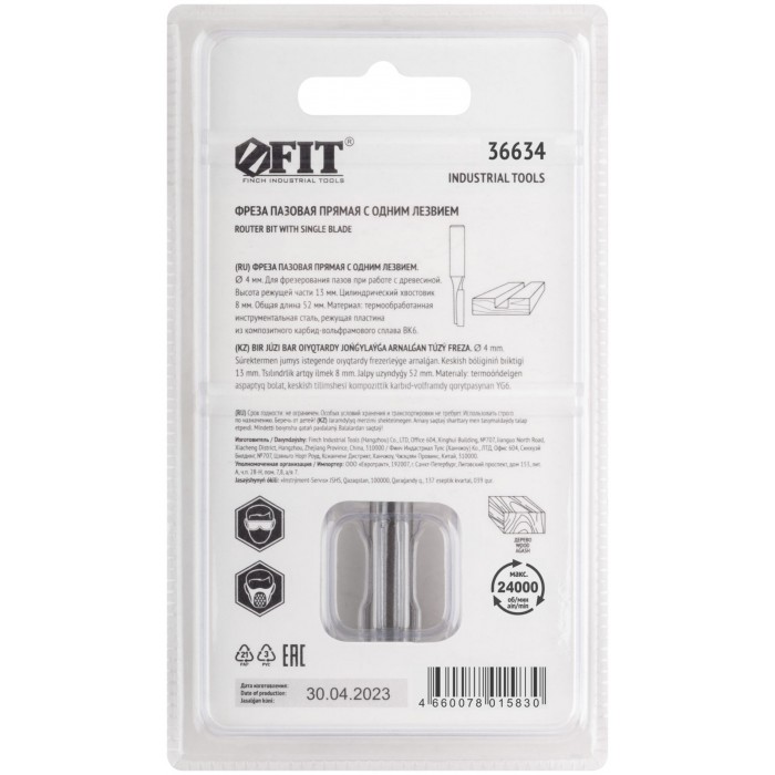 Фреза пазовая прямая с одним лезвием, DxHxL = 4x13x52 мм (36634)