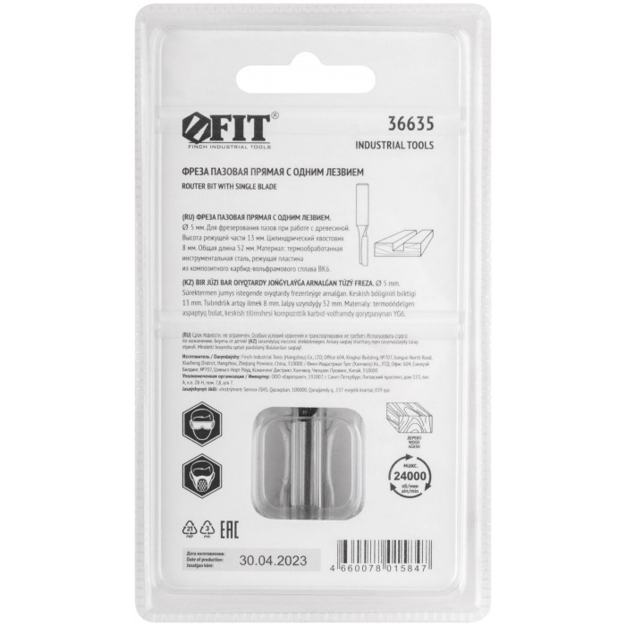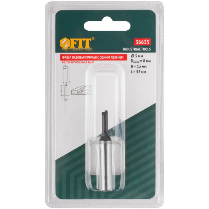 Фреза пазовая прямая с одним лезвием, DxHxL = 5х13х52 мм (36635)