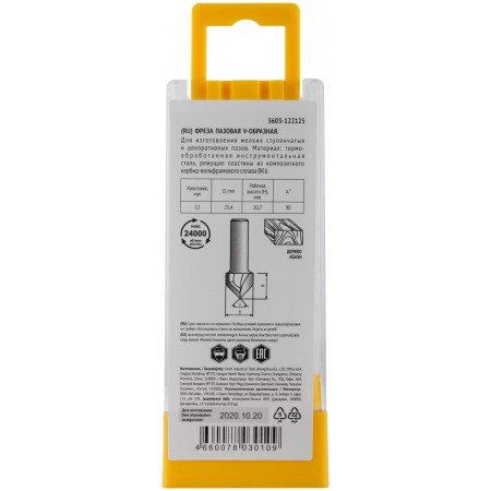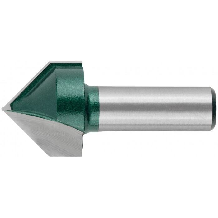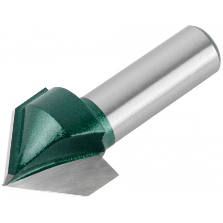 Используется для работ по дереву. Для фрезерования пазов. Угол при вершине 90°. Цилиндрический хвостовик. Материал: инструментальная сталь, с твердосплавными режущими вставками. Упаковка: пластиковая коробка.