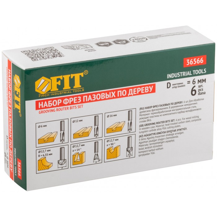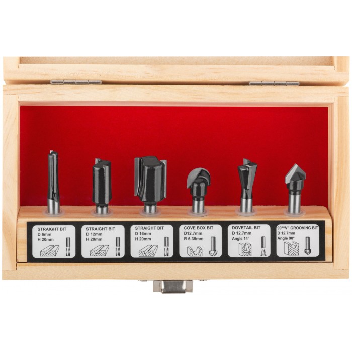 Фрезы по дереву кромочные, набор 6 шт., деревянный бокс, хвостовик 6 мм (36566)