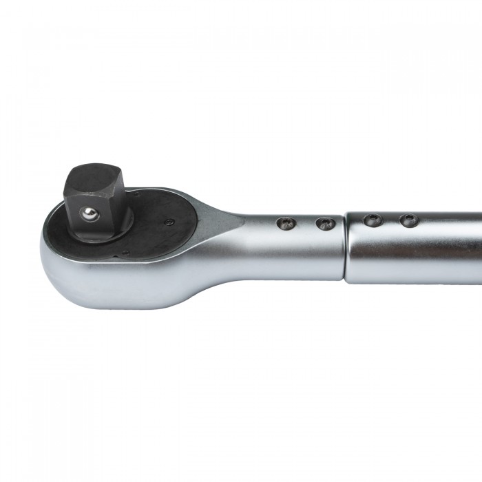Нажимной фиксатор у верха рукоятки обеспечивает надежную блокировку установленного момента, предотвращая случайное переключение. При достижении установленного момента происходит размыкание динамометрического механизма. Оператор слышит громкий щелчок и ощущает его рукой.