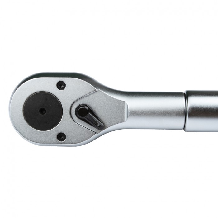 Двусторонний ход с флажковым переключателем - для удобства переключения реверса трещоточного механизма. Износостойкая металлическая рукоять с насечками препятствует соскальзыванию. 45 зубцов в трещоточном механизме - для точной работы даже в ограниченном пространстве.