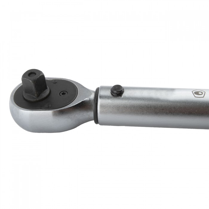 Нажимной фиксатор у верха рукоятки обеспечивает надежную блокировку установленного момента, предотвращая случайное переключение. При достижении установленного момента происходит размыкание динамометрического механизма. Оператор слышит громкий щелчок и ощущает его рукой.