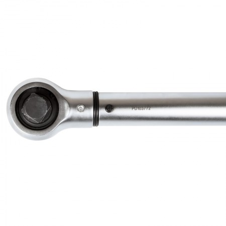 Нажимной фиксатор у верха рукоятки обеспечивает надежную блокировку установленного момента, предотвращая случайное переключение. При достижении установленного момента происходит размыкание динамометрического механизма. Оператор слышит громкий щелчок и ощущает его рукой.