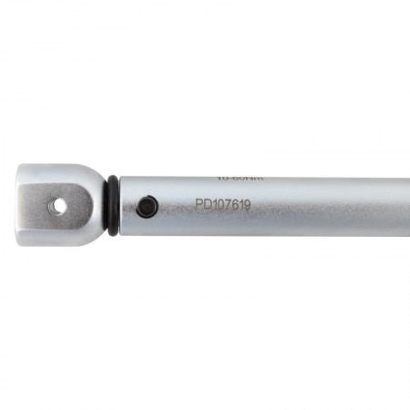 Нажимной фиксатор у верха рукоятки обеспечивает надежную блокировку установленного момента, предотвращая случайное переключение. При достижении установленного момента происходит размыкание динамометрического механизма. Оператор слышит громкий щелчок и ощущает его рукой.