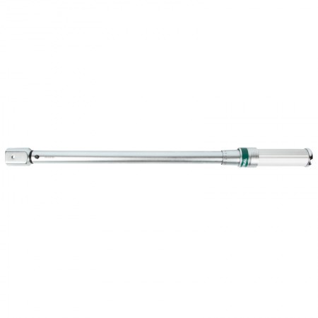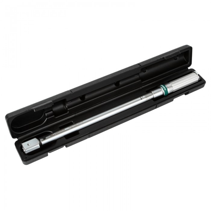 Нажимной фиксатор у верха рукоятки обеспечивает надежную блокировку установленного момента, предотвращая случайное переключение. При достижении установленного момента происходит размыкание динамометрического механизма. Оператор слышит громкий щелчок и ощущает его рукой.