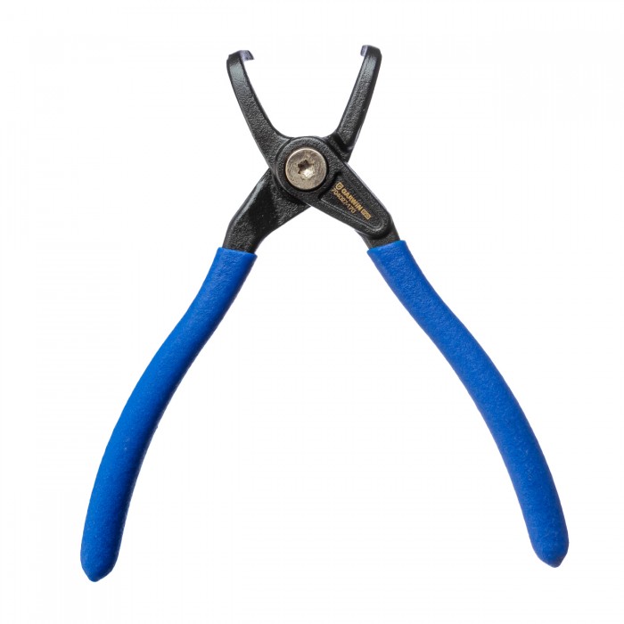 Съемник внутренних стопорных колец усиленный, загнутый Garwin 704027 из хром-ванадиевой стали и ручками из эргономичного нескользящего полимера. Наконечники - высокопрочная подшипниковая сталь. Съемник работает на сжим. Длина инструмента - 170 мм.