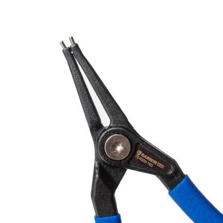 Съемник внешних стопорных колец усиленный, прямой Garwin 704033 из хром-ванадиевой стали и ручками из эргономичного нескользящего полимера. Наконечники - высокопрочная подшипниковая сталь. Съемник работает на разжатие. Длина инструмента - 180 мм.