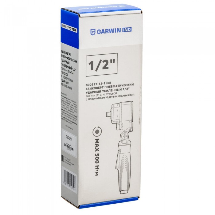 Гайковерт пневматический ударный, усиленный, 1/2" 500 Нм (51 кГм), угловой, с повортным ударным механизмом, GARWIN INDUSTRIAL, 800527-12-1508